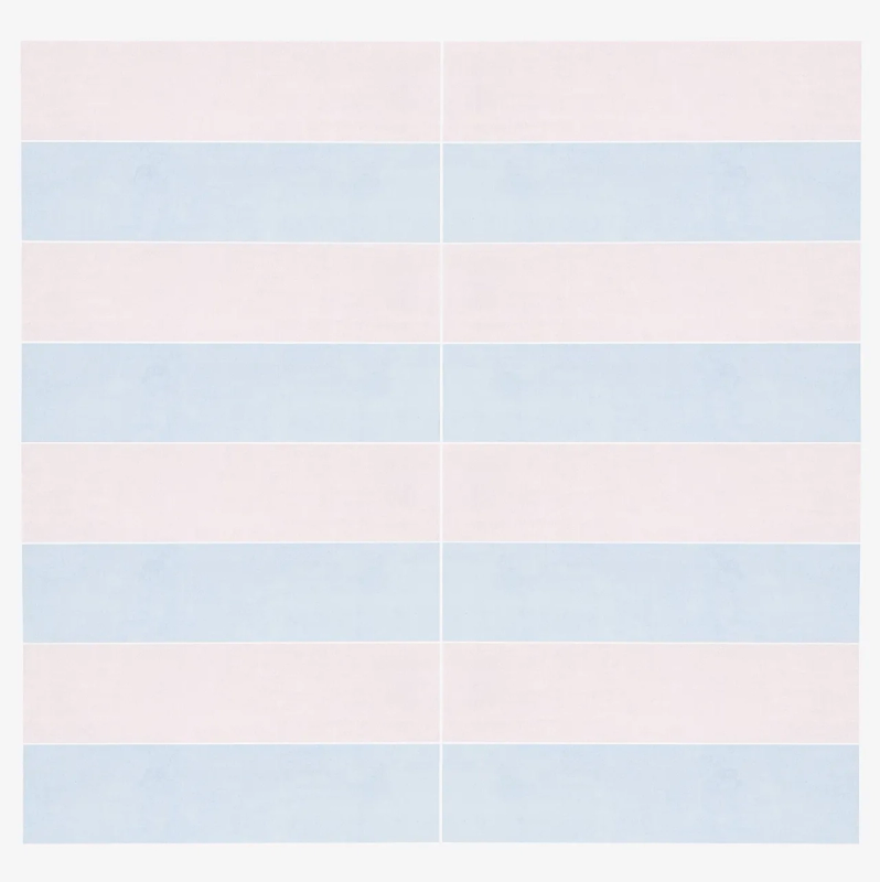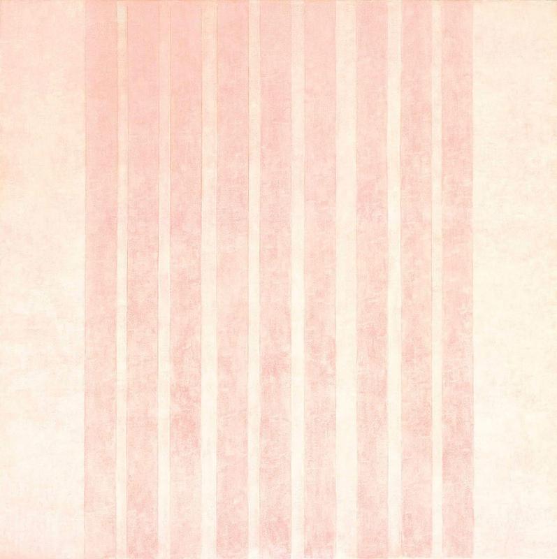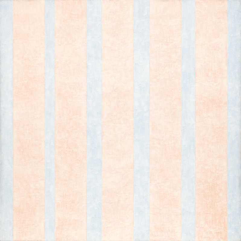 Agnes Martin's transition to bar paintings marked a significant phase in her artistic development. After leaving New York and the art world behind in 1967 and spending a year and a half on the road, Martin resurfaced in New Mexico in 1968. Settling on a mesa near the town of Cuba, she lived in this challenging yet inspiring landscape for six years without painting. It wasn't until 1974 that she began painting again, readying a new series of work for exhibition at Pace Gallery in New York by 1975. This series included "Untitled #3" (1975), one of the first canvases she painted after her hiatus, which maintained her usual six-foot-square format and the use of acrylic and graphite. This work introduced the use of multiple-color bases and laid the groundwork for what would evolve into her bar format—six tall rectangles in vertical orientation, marked by a light application of color, reminiscent of sun-bleaching, and separated by thin white lines (Cahiers d'Art Institute).