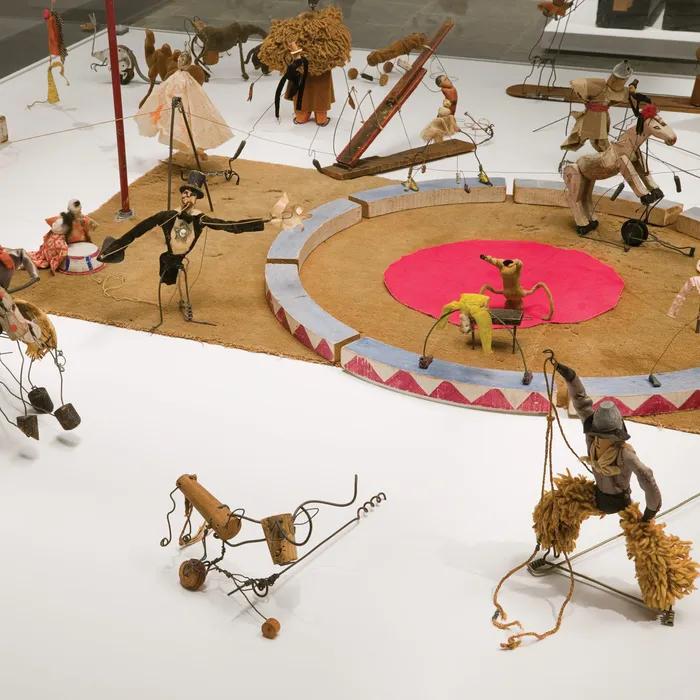 One notable production was Panorama (1935), choreographed by Martha Graham, for which Calder designed mobile sets. This work was part of a series of collaborations with Graham that exemplified Calder's ability to integrate his kinetic sculptures into the dynamic space of dance. In 1936, Calder created the mobile decor for Erik Satie's Socrate performed at the First Hartford Music Festival at the Wadsworth Atheneum, Hartford, showcasing his skill in enhancing theatrical performances with his sculptures. Calder’s Paper Ball: Le Cirque des Chiffonniers (1936) further demonstrated his aptitude for production design, contributing to the visual and sensory experience of the performance (Calder Foundation).
