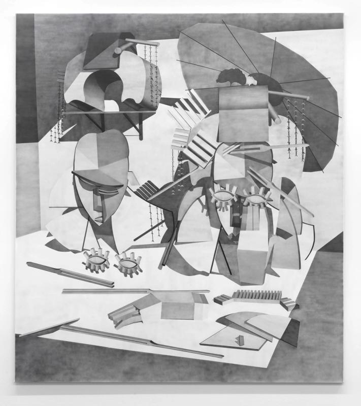 Singer's early paintings are characterized by their exploration of the relationship between digital processes and traditional painting techniques. She utilized 3D software not only as a tool for creating images but also as a conceptual framework for thinking about space, form, and the construction of visual narratives. This period was marked by an experimentation with grayscale, focusing on the interplay of light and shadow to create depth and volume on flat surfaces. The use of airbrushing allowed Singer to achieve a level of precision and smoothness in her work, aligning with her interest in the digital aesthetic while challenging the material boundaries of painting (Wikipedia) (Hauser & Wirth).
