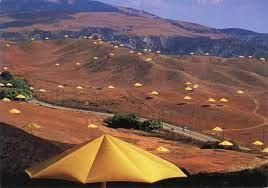 The concept for "The Umbrellas" began in 1984, and over the next several years, Christo and Jeanne-Claude engaged in extensive planning and preparation. The artists chose the umbrella as a symbol to represent the differences in land use and climate between Japan and California. In Japan, the blue umbrellas were installed close together in the lush, green fields of Ibaraki, symbolizing the area's rich water resources and dense vegetation. In contrast, the yellow umbrellas in California were spread out across the arid, rolling hills of Tejon Ranch, reflecting the region's dry climate and expansive landscape (Wikipedia) (Art in Context).