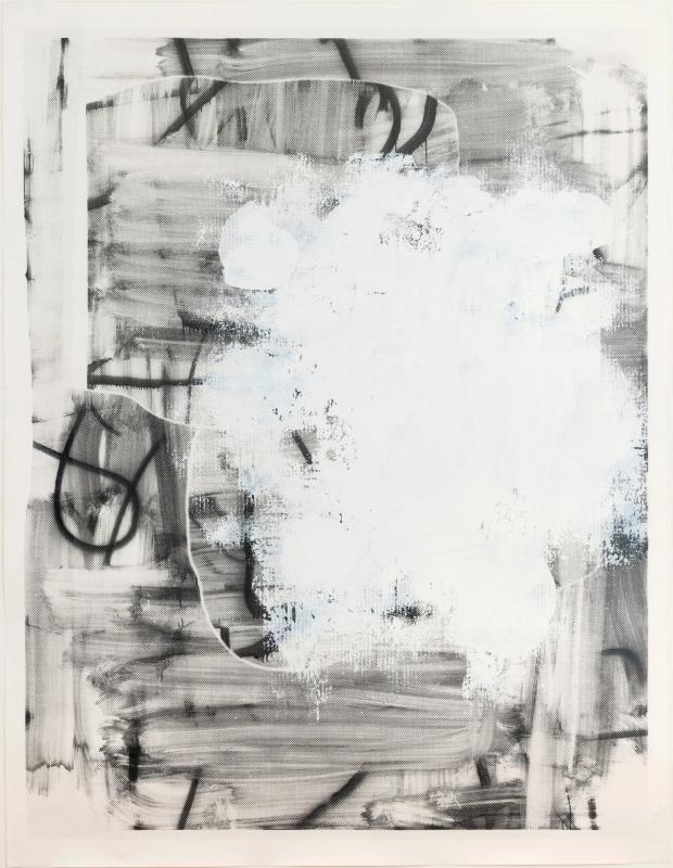 Beyond text, Wool is also celebrated for his abstract paintings. These works often feature a monochrome palette and are created through a variety of techniques such as rolling, dripping, and layering paint, as well as using spray guns and solvents. His abstract works are characterized by their dynamic, often chaotic energy.