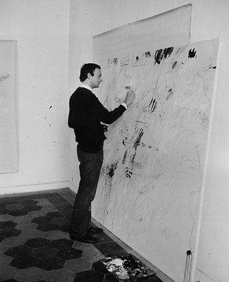 His move to Italy in the late 1950s was pivotal, offering him the freedom to delve deeper into the Mediterranean's rich historical and cultural tapestry. This period saw the introduction of color into his work, leading to the creation of vibrant pieces inspired by Roman and Italian mythology, history, and art. The "blackboard" paintings, with their white scrawls and loops on dark backgrounds, marked a transition to more austere color schemes while maintaining the dynamic, gestural quality of his earlier works (Artland Magazine) (FAPE).