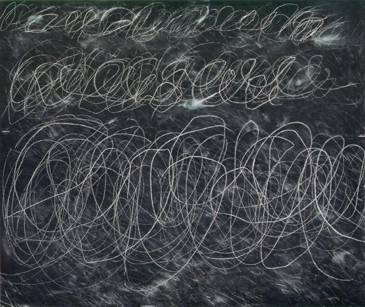 Twombly's work often draws from the concept of handwriting or mark-making, with compositions that evoke blackboards covered in chalk writing. This was particularly evident in a series of grey-ground works created between 1966 and 1972. The repetitive, rhythmic drawing, inspired partly by handwriting drills, did not create specific words but suggested a continuous flow of marks. Leonardo da Vinci's notebook drawings were a significant influence on Twombly during this period, emphasizing the process of drawing and the motion observed in Leonardo's sketches of floods (The Art Story).