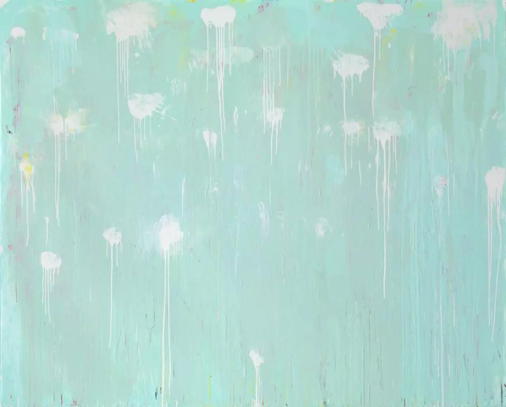 The series includes seascapes inspired by Twombly's visit to St. Barthélemy in 2003. These paintings, executed in oil on canvas, are characterized by a horizontal landscape format that evokes the Caribbean Sea's turquoise palette. The transparent layers of paint mimic the tropical water's depth and atmosphere. However, upon closer inspection, the awkward, messy splotches of white, along with traces of red and yellow applied directly with the artist's fingers, reveal a darker, more tumultuous energy beneath the serene surface (The Art Institute of Chicago).