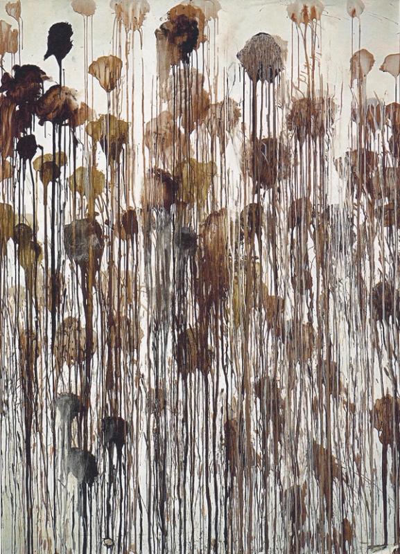Twombly's shift towards these themes and techniques followed his 1994 retrospective at the Museum of Modern Art in New York and was influenced by the critical success of Lepanto, a suite of twelve paintings first shown at the 49th Biennale di Venezia in 2001. This period in Twombly's work is characterized by a new approach to color and form, where slender lines and loops of paint balance expressive dynamism with elegance. The dense strokes in these pieces not only suggest the movement and vitality found in nature, such as the petals of peonies and chrysanthemums, but also reflect Twombly's ongoing meditation on poetry, history, and mythology. His works from this time are described as both vital and elegiac, capturing the spirit of Bacchanalia as well as the tranquility and reflective qualities of nature's more subdued moments (Gagosian) (Artland Magazine).