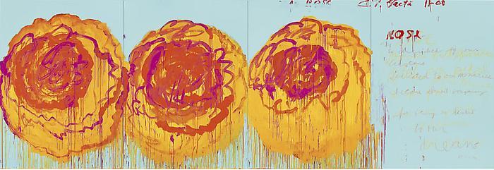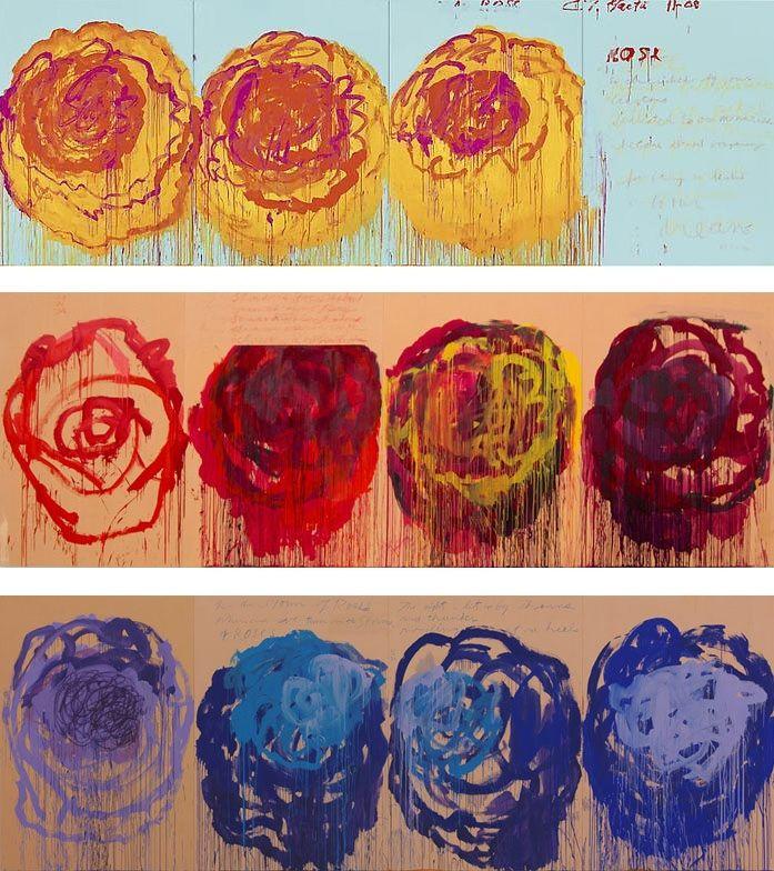 Twombly's bold use of color in these works aligns with his earlier painting cycles, like "Analysis of the Rose as Sentimental Despair" from 1985, referencing quotes from poets including Rilke, Rumi, and Giacomo Leopardi. This intertextual approach situates Twombly within a dialogue not only with other visual artists such as Andy Warhol and Henri Matisse but also within a broader cultural and literary context. The "The Rose" series exemplifies Twombly's ongoing engagement with the themes of nature's beauty and fragility, inviting viewers to reflect on the ephemerality of existence through the lens of classical and modern poetic traditions (Gagosian) (theartwolf).