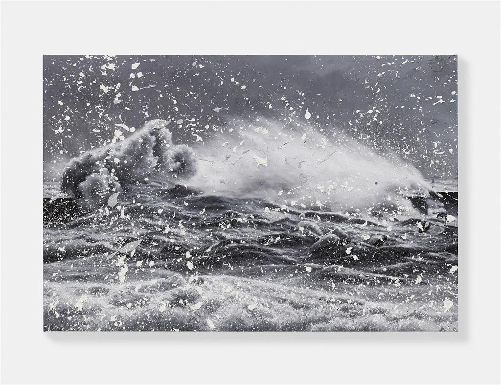 The "Sea Paintings" pivot towards a photorealistic depiction, freezing the tumultuous energy of coastal storms in grayscale. These works, composed of 64 paintings created in 2022, continue Hirst's practice of "Fact Paintings," where fleeting moments captured in photography are transformed into lasting painted renditions, embodying a clash between chance and intention (MyArtBroker) (FAD Magazine).