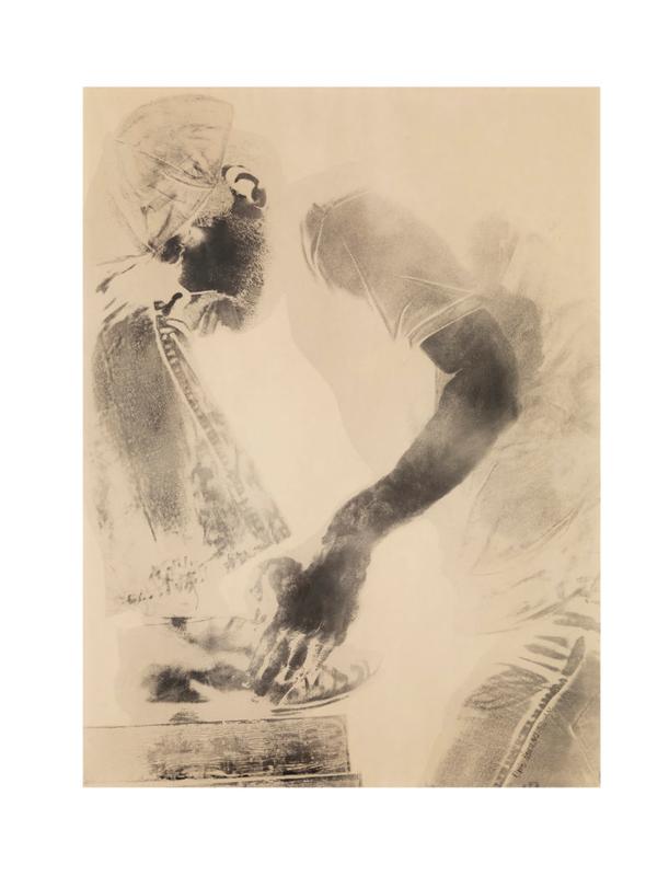 David Hammons' body prints, created between the late 1960s and early 1970s, stand as a pioneering form of expression that combined performance, sculpture, and printmaking. During this period, Hammons explored the use of his own body, and occasionally others', as both a tool and a medium, pressing greased parts against paper surfaces and then dusting these impressions with powdered pigments and charcoal to create detailed, life-sized images. These works, deeply personal and politically charged, capture textures of skin and hair, embedding the personal identity and the social conditions of African Americans directly into the art (The Drawing Center).