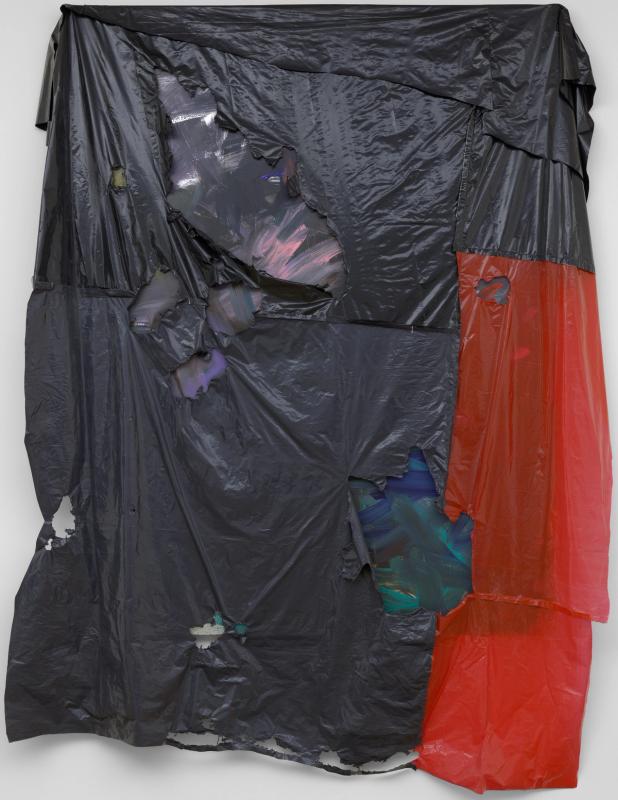 David Hammons' Tarpaulin Paintings are a striking series that embodies his critical approach to art, blending the lines between painting and sculpture, high art and everyday materials. A notable work from this series, showcased at Phillips, combines abstractly painted canvas with an industrial plastic tarp, challenging traditional art hierarchies and material value. Hammons’ use of everyday materials like tarps not only questions the sanctity of traditional canvas but also incorporates a narrative of the black urban experience, replacing the white marble of classical sculpture with black tarpaulin as a bold statement against the white-centric art historical canon (Phillips).