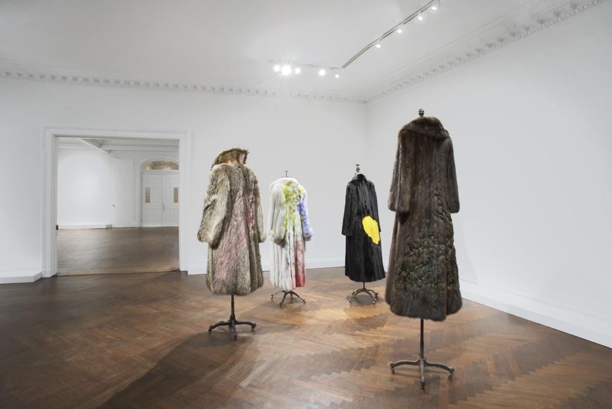 In the late 2000s, Hammons and Hasegawa created a striking installation involving full-length fur coats mounted on antique dress forms. This selection included two minks, a fox, a sable, a wolf, and a chinchilla. The coats were deliberately altered—burned, stained, and painted on the back, transforming these symbols of luxury and status into provocative statements on politics, consumerism, animism, animal rights, and more. The act of defacing these coats serves as a commentary on the value placed on material wealth and the superficial judgments of societal status, invoking a critical view of consumerism's excesses and the ethical implications of fur as a luxury item. The choice of venue for this installation, L & M Arts in upscale Manhattan, added another layer of irony, emphasizing the contrast between the affluent lifestyle associated with such areas and the critical message behind the artwork (Wikipedia) (Mnuchin Gallery).
