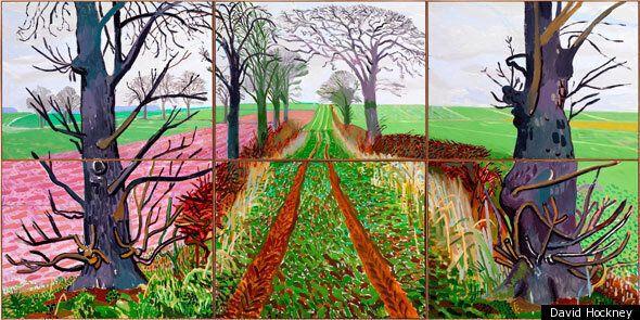 The exhibition was not just a retrospective but a highlight of Hockney's recent works focused on his native Yorkshire, after spending a long period in California. It featured over 296,000 visitors at the Guggenheim Museum Bilbao alone and was celebrated for its fresh take on landscape art. The show included oil paintings, collages, digital videos, and iPad paintings, with a significant emphasis on the natural changes throughout the year, particularly noted in works like "Spring’s Arrival in Wold Gate," composed of 32 canvases (Wikipedia).