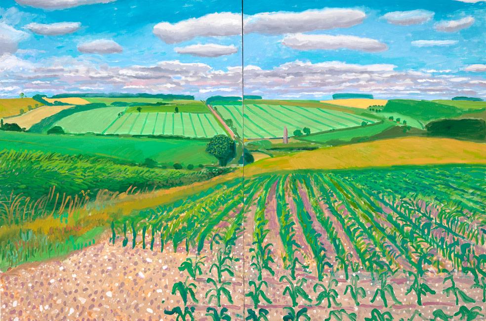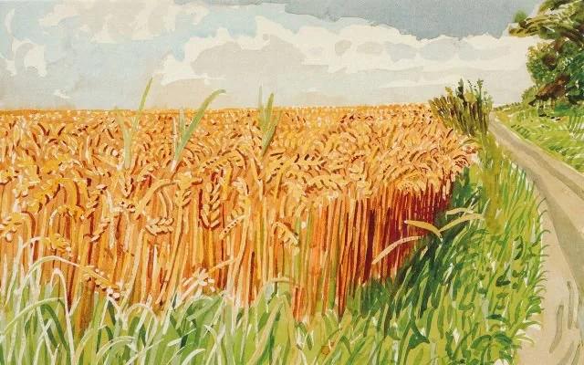 David Hockney's "Midsummer: East Yorkshire" series from the late 1990s to early 2000s is a vivid exploration of the English countryside through the medium of watercolor. Exhibited in February at L.A. Louver in Los Angeles, this collection comprises 36 watercolors that depict Hockney’s experiences and observations of the landscape around East Yorkshire. The works stand out for their casual yet exquisite portrayal of scenes that, while ordinary—like leafless trees, golden fields, and distant farmhouses—become extraordinary under Hockney's gaze. These paintings invite viewers to breathe deeply and soak in the fleeting beauty of these scenes, often overlooked by the casual observer (David Hockney) (The David Hockney Foundation: Home).