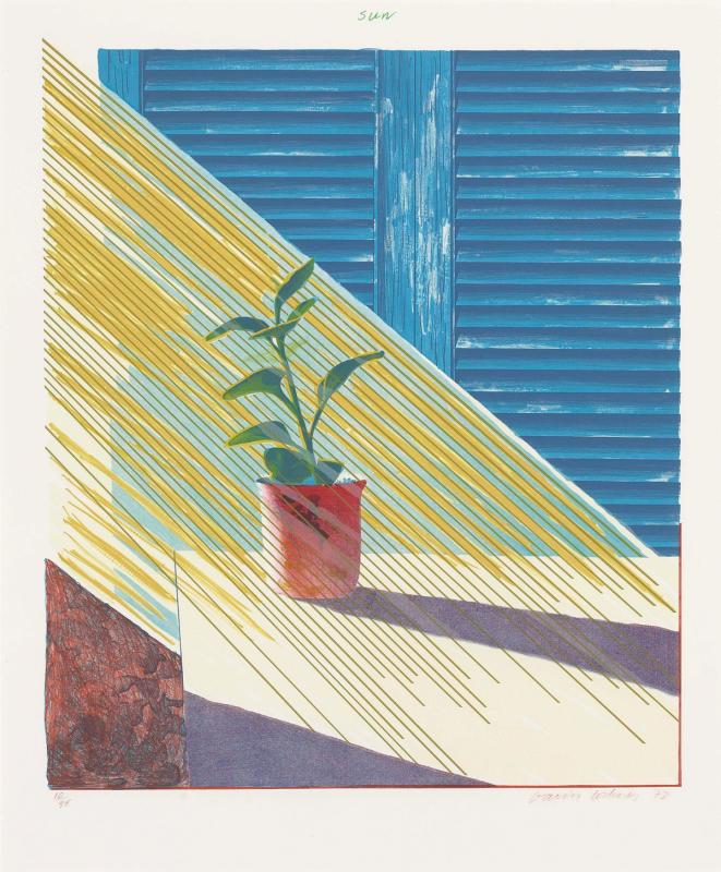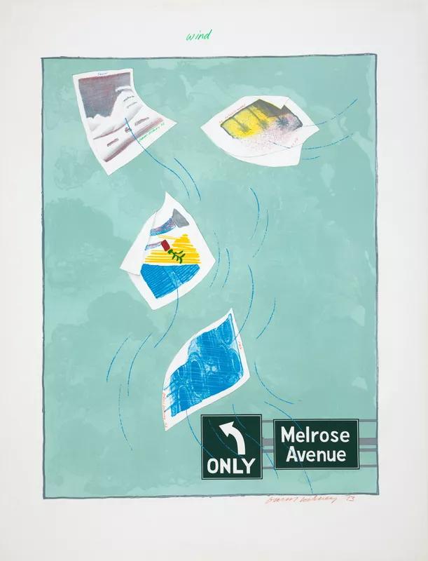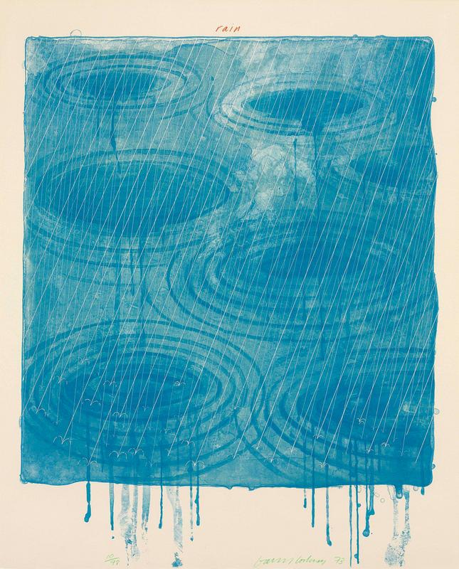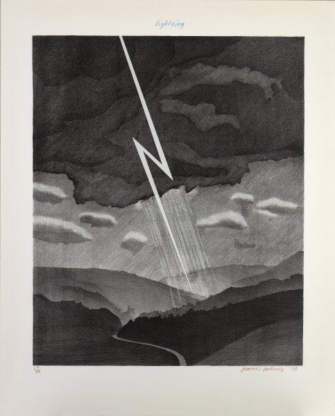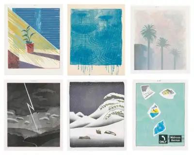 David Hockney's The Weather Series from 1973 is a compelling exploration of atmospheric conditions through the medium of art. This suite of works, encompassing six color lithographs with screen printing, stands out for its innovative approach to depicting various weather phenomena such as rain, snow, mist, wind, lightning, and sunshine. Each piece within the series showcases Hockney's ability to capture the essence and mood of different weather conditions, employing techniques that blend traditional lithography with screen printing to create vivid, dynamic images (National Gallery of Art) (Buffalo AKG Art Museum).