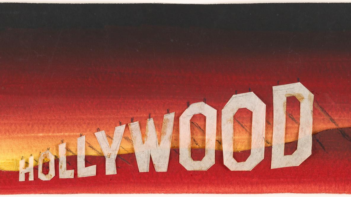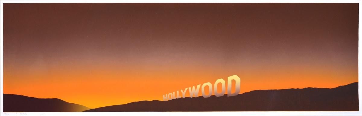 Ed Ruscha's "Hollywood Sign" series reflects his deep engagement with the landscape and film culture of Los Angeles, marking a significant theme within his broader body of work. Ruscha first drew the Hollywood sign in 1967, and since then, this emblematic image has recurred in many of his paintings, drawings, and prints. His fascination with the sign extends beyond its cultural iconography; he has humorously referred to it as a "smog indicator," suggesting that if he could see the sign clearly, it indicated that the weather was fine (Unframed).