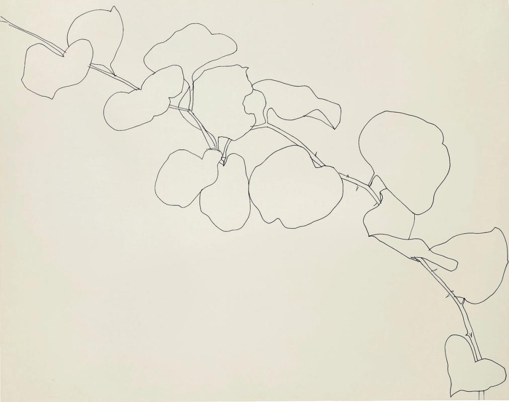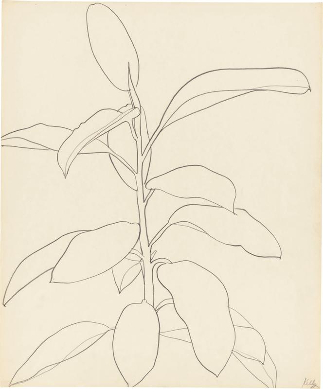 The genesis of Kelly's plant drawings can be traced back to his early years, even before his formal exploration into abstraction began. Growing up in New Jersey, the artist found inspiration in the local flora, an interest that would flourish throughout his career. His approach to drawing plants—ranging from seaweed and flowers to leaves and fruits—was marked by a desire not to depict, but to distill their forms to their most basic essence, often using simple contour lines. This method paralleled his abstract work's reduction of visual elements to pure forms and colors (The Metropolitan Museum of Art) (Museum of Fine Arts Boston) (Norton Simon Museum).