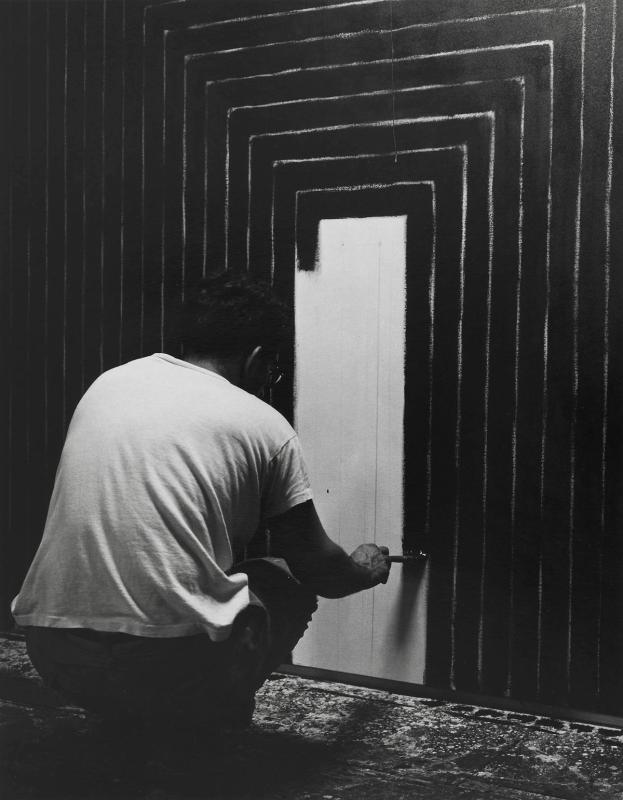 Stella gained early fame with his "Black Paintings" series in the late 1950s. These works, characterized by their stark, geometric patterns of black stripes separated by very thin lines of unpainted canvas, were influential in the development of minimalism.