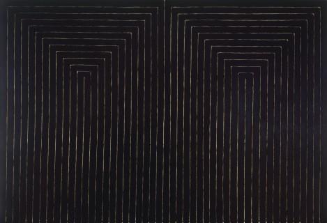 The "Black Paintings" were notably devoid of any illusion of depth or narrative, focusing instead on the painting as an object. This approach was underscored by Stella's use of symmetrical compositions, which played a crucial role in subverting spatial illusions, a technique used throughout the series. These works were not only a response to the subjective decision-making prevalent in the art of the time but also an exploration of non-compositional abstraction, where the emphasis lay on the materials and the viewer's engagement with the painting. Stella's famous statement from a 1964 interview, "What you see is what you see," encapsulates the essence of these works, highlighting their straightforward, minimalist nature (Phaidon).