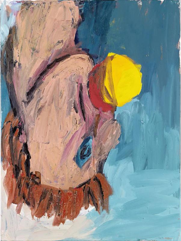Georg Baselitz's Orange Eaters (Orangenesser) series, created in the early 1980s, is a notable example of his Neo-Expressionist approach, marked by vigorous brushwork and vibrant color palettes. This series, along with the "Drinkers" (Trinker) series, was prominently featured in his first gallery exhibition in the United States at the Xavier Fourcade Gallery in New York in 1981. The Orange Eaters series focuses on the seemingly mundane act of eating an orange, yet Baselitz transforms this simple subject into a dynamic exploration of form and color.