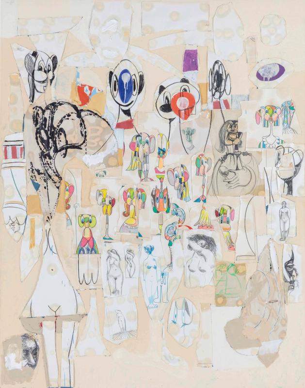 Condo's collage paintings from this era also often feature grotesque, exaggerated figures that reflect his interest in human psychology and consciousness. These figures, while often humorous, also carry a certain poignancy, as they explore themes of identity, societal norms, and the human condition. The combination of different artistic influences in his collages—from the structured disarray of Cubism to the dreamlike quality of Surrealism—underscores his ability to synthesize diverse elements into a cohesive and thought-provoking whole (Kooness) (Wikipedia).