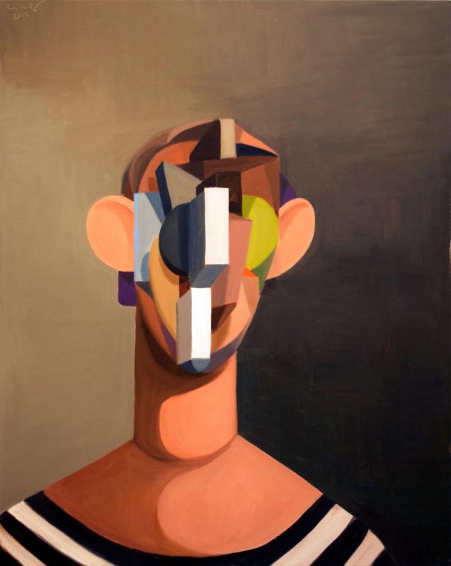 George Condo's "Toy Heads" series from 2012 comprises eighteen robot-like portraits, including notable figures such as Iron Man, Mike Kelley, and Picasso. These works highlight Condo's iconic reconstructed Cubist heads, reflecting his deep engagement with and reinterpretation of Cubist techniques, moving beyond mere visual representation to explore the complexities of identity and its manifestation. The series engages in a rigorous interrogation of portraiture, delving into Condo's preoccupations with the nature of subject-hood and its relationship with the painted surface. By integrating references to Picasso and Warhol, notably in works like "The Young Sailor," which pays homage to Matisse’s "The Young Sailor" (1906) and Picasso’s "The Sailor" (1943), Condo creates a dialogue with past masters while presenting his unique vision. "The Young Sailor" stands out within the series for its direct tribute to these artists, with Condo's cubist head adorned in a striped Breton shirt, a symbolic nod to the artists' iconic attire (Sothebys.com).