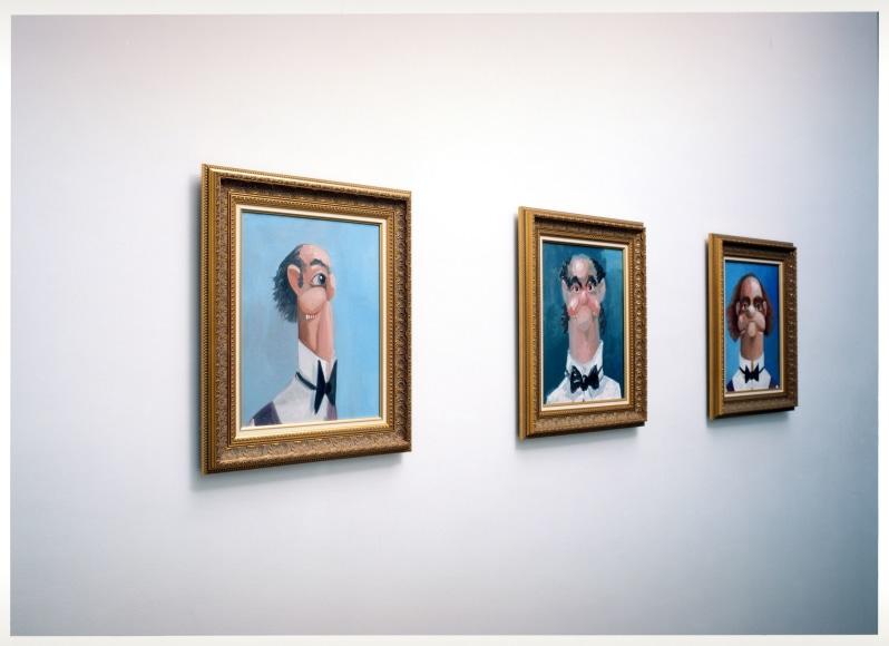 Condo's "Existential Portraits" exhibit his conceptual approach to art, merging high and low cultural references in a way that prompts the viewer to question the boundaries between them. As the viewer navigates through the series, the ever-changing faces and scenes suggest a deeper commentary on the fluidity of identity and the complexity of the human condition. The presence of characters from popular culture and everyday life, juxtaposed with those of his own invention, creates a dynamic dialogue between the viewer and the artwork, encouraging introspection and reflection on the nature of existence itself.