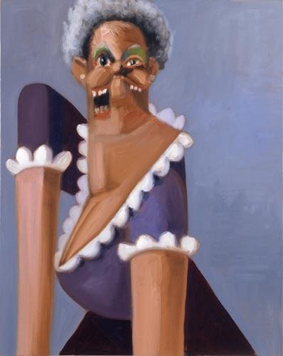 In his works, Condo engages with archetypes and imagined figures, drawing from real life as he perceives or envisions it. The central character in this series is Jean Louis, who appears in multiple forms, including a driver, a butler, maids, a chef, and numerous relatives. This array of characters represents "fractions of humanity battling extinction," highlighting the struggle for identity and meaning within the modern world. Alongside these figures, Condo incorporates icons such as Batman and the Playboy Bunny, as well as characters like Uncle Joe and the Truck Driver, further enriching his exploration of human nature through a diverse cast of characters.