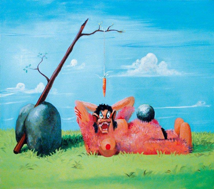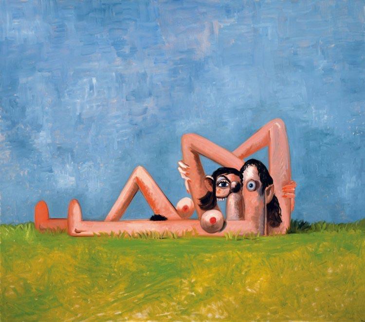 The "Artificial Realism" exhibition included several key pieces such as "Woman and Man," "Smiling Face," "Seated Girl," and "Orgy Composition," all created in 2008. These works demonstrate Condo's mastery in blending the grotesque with the humorous, often featuring distorted, fragmented figures that challenge traditional notions of portraiture. For instance, "Orgy Composition" depicts a chaotic scene with exaggerated human forms, encapsulating the complexity and absurdity of human interactions (Tatintsian Gallery) (Tatintsian Gallery).