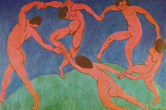 Matisse drew inspiration from various sources for these works, including the circular joyous figures in William Blake's Oberon, Titania and Puck with Fairies Dancing (1786), the lively scenes at Parisian dance halls, and the rhythmic compositions of Stravinsky's music. This synthesis of influences underscores Matisse's interest in conveying movement and emotional depth through simplified forms and vibrant colors, aiming to express the essence of human experiences in a universal language.