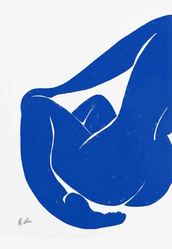 Henri Matisse's Blue Nudes series, created in the early 1950s, represents a pivotal moment in the artist's career, marking his innovative use of the paper cut-out technique. This series consists of four works, each showcasing a nude female figure in various poses of introspection and repose, rendered in Matisse's signature vibrant blue. The choice of color and form reflects Matisse's interest in expressing volume and distance, a preoccupation that dates back to his Fauvist period. The intense blue, a color that Matisse associated with depth and spaciousness, dominates these compositions, highlighting his lifelong fascination with color as a medium for emotional and aesthetic expression (Wikipedia) (Art in Context).