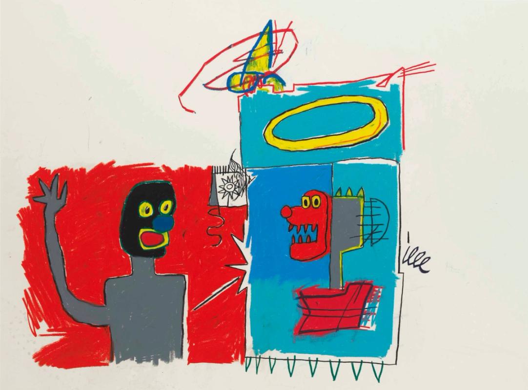 Jean-Michel Basquiat's works on paper hold a significant place in his artistic repertoire, reflecting his raw and expressive style. These pieces illustrate the wide range of subject matter and modes of expression he employed throughout his career, and are notable for their dynamic use of various media, including oilstick, crayon, acrylic, pen, pencil, and watercolor (VDWNY) (Artnet).