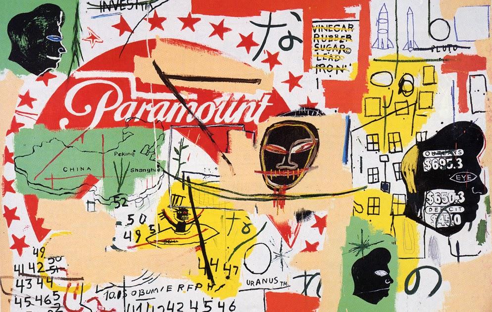 The paintings reflect a dialogue between the two artists, each bringing his distinct approach and challenging the other. Warhol's clean, commercial aesthetic contrasted with Basquiat's raw, expressive energy, creating a unique tension and harmony within each piece. This dynamic is evident in "Olympic Rings" (1985), where Warhol's structured logo is overlaid with Basquiat’s chaotic and vibrant additions, highlighting themes of consumerism, identity, and race (Fondation Louis Vuitton).