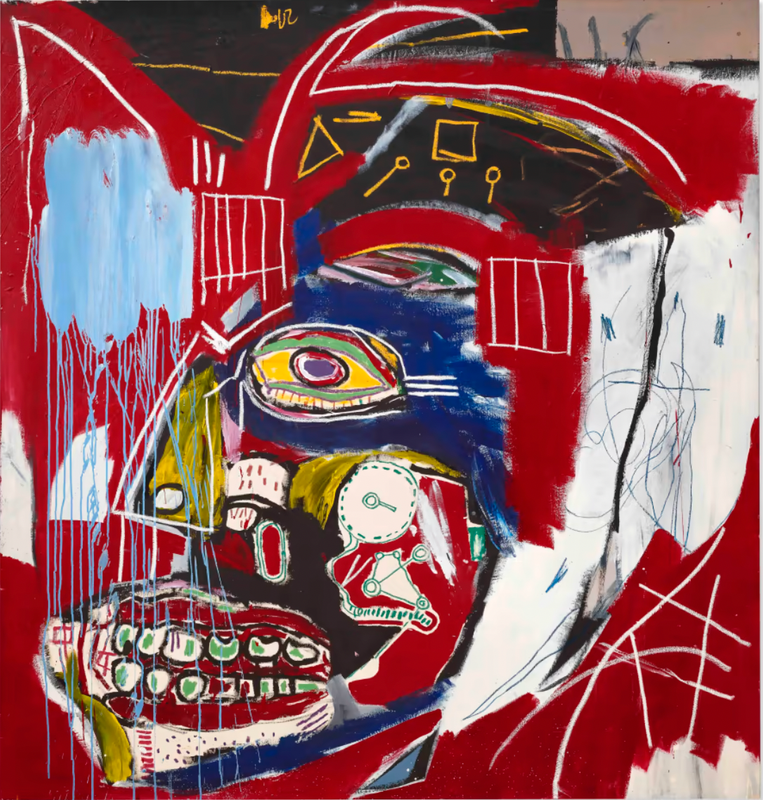 The skull motif is a recurring theme in Basquiat's work, often serving as a form of self-portraiture and a commentary on the human condition. These paintings are deeply autobiographical, reflecting Basquiat’s own experiences and struggles as a Black artist in America. The skulls evoke the influence of African masks, which Basquiat reclaims and recontextualizes within his art, blending his heritage with contemporary cultural critiques (Artsy). This reclamation is particularly significant given the historical fetishization of African art by Western modernists, such as Picasso.