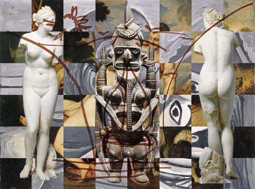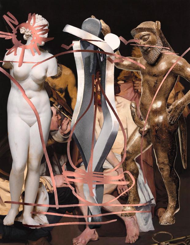 The Antiquity series is characterized by its large-scale oil paintings that incorporate references to classical art, juxtaposed with modern imagery, creating a dialogue between the past and the present. For example, Antiquity (Manet), with its dimensions of 108 x 84 inches, showcases Koons' skill in blending different art historical periods into a single canvas, provoking a reconsideration of art's timeless qualities and its continual evolution (Jeff Koons).