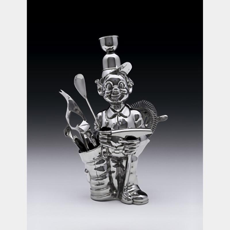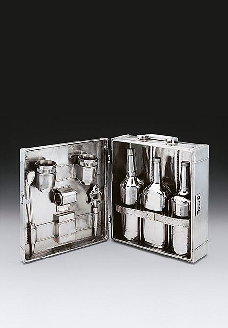 Jeff Koons' Luxury and Degradation series, unveiled in 1986, critically examines the impact of advertising and consumer culture on society, particularly focusing on the allure and consequences of alcohol consumption. The series juxtaposes the opulence associated with alcohol-related advertisements and products against the backdrop of social stratification and the deceptive nature of luxury. Koons utilized stainless steel, a material he associated with the proletarian class due to its common use in kitchenware, to craft objects and utensils related to alcohol consumption. By giving these items a shiny, lavish finish, he endowed them with a semblance of luxury, challenging the viewers' perceptions of value and class distinction (Guggenheim Bilbao).