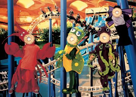 The paintings in the "Easyfun-Ethereal" series are particularly notable for their digitally manipulated collage technique, through which Koons layers and combines photographic images into intricate, multi-dimensional tableaux. These works often juxtapose idyllic natural scenes with elements of popular culture and consumerism, such as hamburgers, doughnuts, and toys, as well as parts of the human body. This juxtaposition creates a tension between the natural and the artificial, the organic and the manufactured, inviting viewers to reflect on the nature of desire and satisfaction in a consumer-driven world. The glossy, almost hyperreal finish of these paintings enhances their visual impact, blurring the lines between painting, photography, and digital art.