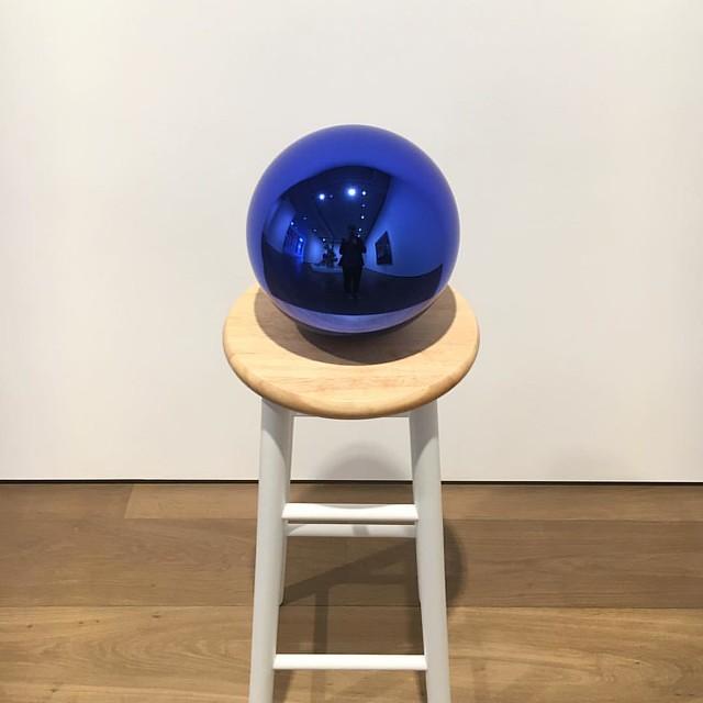 Jeff Koons' Gazing Ball (Stool), crafted between 2013 and 2016, is a distinctive piece within his acclaimed Gazing Ball series. This work is composed of polychromed stainless steel, wood, glass, and aluminum, measuring 13 1/4 x 13 1/4 x 40 1/16 inches (33.66 x 33.66 x 101.76 cm). The series, known for integrating reflective blue gazing balls with various objects, seeks to engage the viewer in a direct and personal manner, encouraging self-reflection and interaction with the artwork (Jeff Koons) (Jeff Koons).