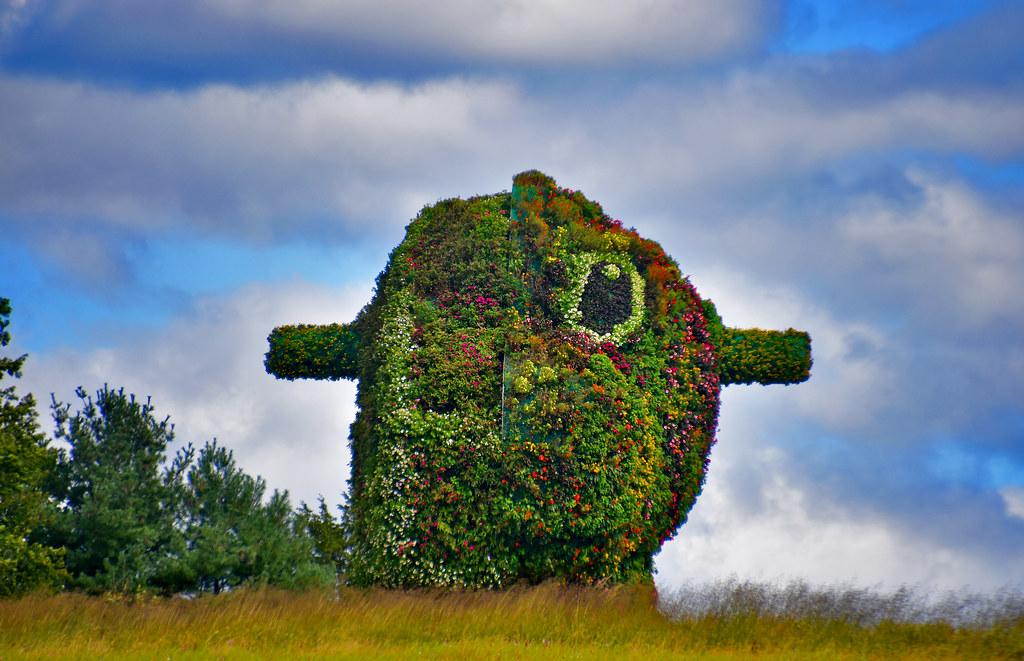 Introduced to the public at various prestigious venues, including its notable display at Rockefeller Center in New York City and its permanent installation at Glenstone in Potomac, Maryland, "Split-Rocker" is constructed from stainless steel, soil, geotextile fabric, and includes an internal irrigation system to support the live plants that cover its surface. The choice of plants—begonias, geraniums, petunias, and fuchsias, among others—is a critical aspect of the work, contributing to its vibrant and ever-changing appearance from May through October (Jeff Koons) (Glenstone).