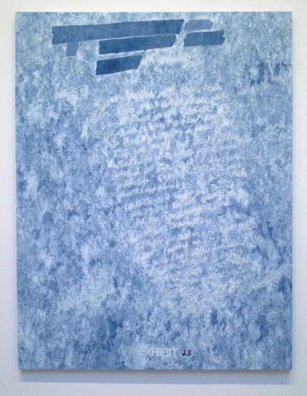 The "Dust Paintings" derive from declassified and redacted documents obtained through the Freedom of Information Act, including reports on the death of Jamal Naseer, an Afghan prisoner, and other texts related to the U.S. military and CIA's use of "enhanced interrogation" techniques. Holzer's meticulous hand-painting process reintroduces a human element to the impersonal nature of the censored documents, evoking the traditional Arabic calligraphy known as ghubar, or "dust writing." This method not only highlights the erasure and concealment inherent in these documents but also the profound human cost obscured behind redactions (Cheim & Read) (Cheim & Read) (GalleriesNow) (Artsy).