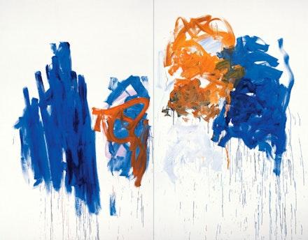 Mitchell's work during this time reflects a mature artist who had fully come into her own, showcasing an exceptional command over color, form, and space. Her paintings from the late 1970s through the 1980s, such as the poignant Chez ma soeur (1981), a tribute to the time spent at her sister's home in Santa Barbara, highlight her ability to convey emotional depth and the subtleties of her relationship with the natural world. This period was also characterized by her engagement with music, as seen in Wood, Wind, No Tuba, which displayed her fascination with the translation of musical scores into visual form, described as "percussive, vocal, and flamboyant" (David Zwirner).