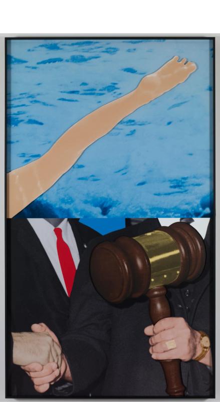John Baldessari's "Hands and/or Feet (Part One)" series from 2009 continues his exploration into the realms of conceptual and surrealist art. This series features a variety of works that showcase Baldessari's unique ability to blend photography and painting into intriguing compositions. The artworks typically involve the juxtaposition of human appendages with unexpected elements or contexts, creating a visual dialogue that is at once familiar and disorienting.