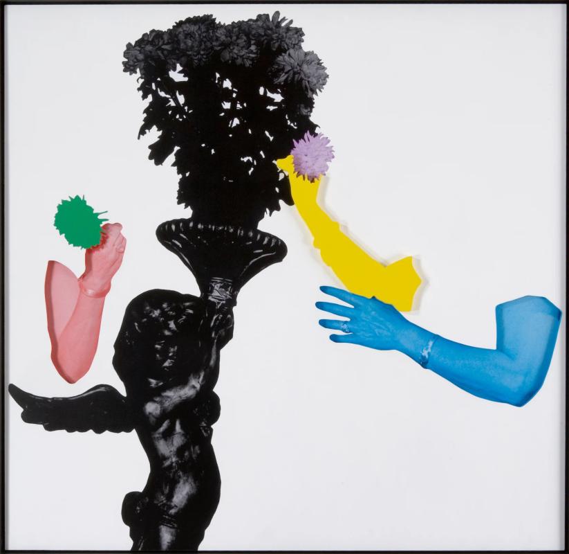 John Baldessari's Arms & Legs (Specif. Elbows & Knees), Etc. series from 2007 presents a fascinating exploration of the human form by isolating and juxtaposing body parts in unexpected ways. This series is part of Baldessari's broader investigation into fragmenting the body and examining its components within minimalistic and surreal contexts. Through the combination of photographic, painted, and three-dimensional elements, Baldessari focuses on elbows, knees, and other segments, often incorporating objects like bottles to create whimsical and thought-provoking compositions. This approach humorously engages with the legacy of Surrealism, setting the stage for a dialogue on the subjective nature of representation (Kadist).