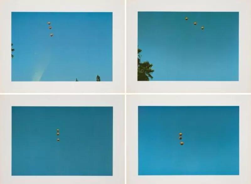 John Baldessari's 1973 series Throwing Three Balls in the Air to Get a Straight Line (Best of Thirty-Six Attempts) is a fascinating exploration of chance, performance, and the conceptual boundaries of art. This work, like much of Baldessari's oeuvre, operates within the realm of conceptual art, where the idea behind the work is as significant as the physical object itself. Baldessari's method involved the simple act of throwing three balls into the air and attempting to photograph them aligned in a straight line. This process, governed by the unpredictability of chance, yielded a collection of images that stand as a testament to Baldessari's playful yet profound engagement with the medium of photography and the concept of artistic creation itself.