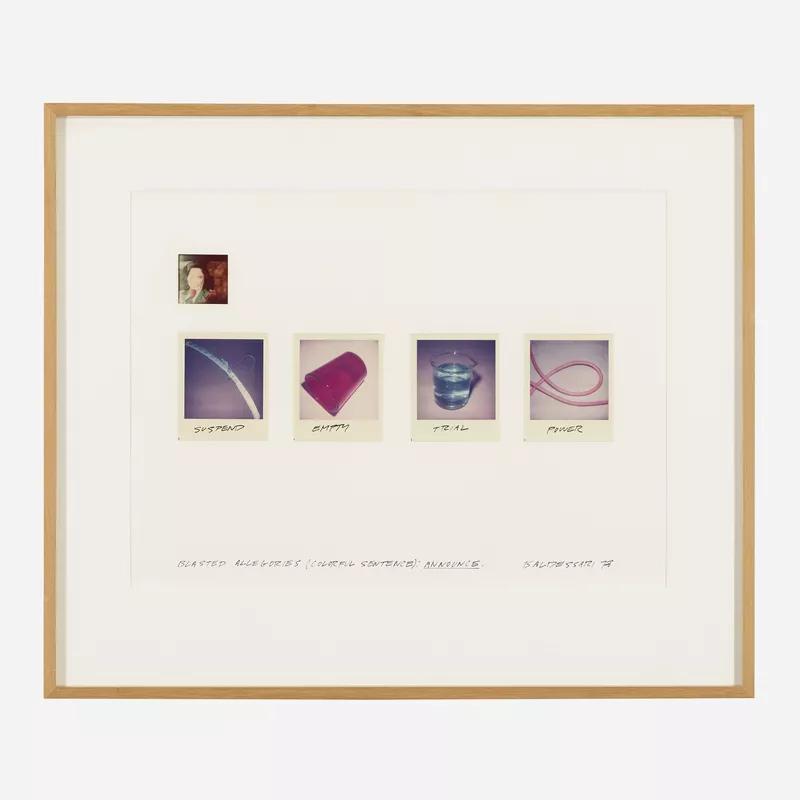 John Baldessari's "Blasted Allegories" series, created between 1977 and 1978, is a deep exploration into the realms of structuralism, post-structuralism, systems-based art, and allegory. This series, particularly focusing on its later works, showcases Baldessari's innovative use of colored photographs arranged on neutral matte boards, appearing as vibrant, structured compositions. By employing a range of constraints and combinatorial systems, Baldessari integrates structural models from various theorists, including Claude Lévi-Strauss, A.J. Greimas, and Noam Chomsky, while also engaging in a post-structural critique that plays with language, destabilizing fixed relationships through word play and other linguistic techniques. The works solicit the viewer to engage deeply, inviting interpretations that move beyond straightforward narratives to engage with the cognitive and playful aspects of meaning-making (Scholars Compass).