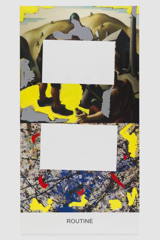 John Baldessari's "Pollock/Benton" series, presented at Marian Goodman Gallery in 2016, is a fascinating exploration of the interplay between painting, photography, image, and language that has characterized Baldessari’s work since the 1960s. This series delves into the art historical dialogue between two iconic American painters: the Regionalist Thomas Hart Benton and his protégé, the Abstract Expressionist Jackson Pollock. By juxtaposing these figures, Baldessari investigates their influence on each other and on the broader spectrum of American art, aiming to uncover a new "intermediate space" within their intersecting legacies (Marian Goodman) (GalleriesNow.net).