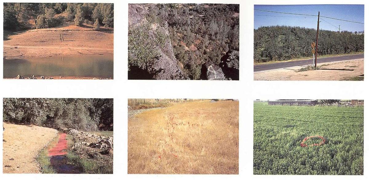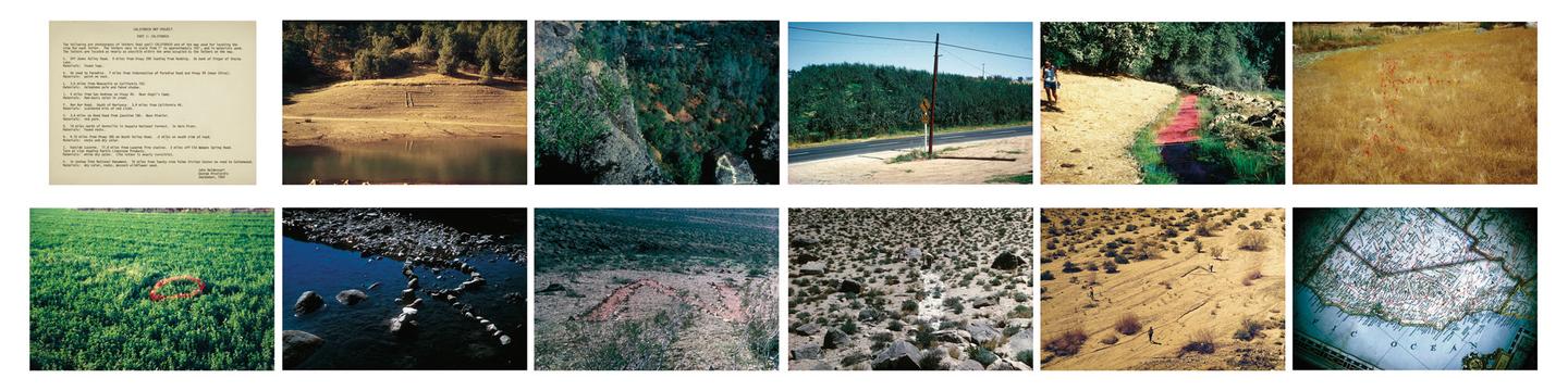 John Baldessari's "California Map Project" from 1969 is an inventive exploration of geography, perception, and conceptual art. In this work, Baldessari embarked on a creative journey across the state of California, identifying the geographic locations that corresponded to the letters in "California" on a state map. At each of these locations, he created or found physical representations of each letter, either by arranging objects such as rocks to form the letters or by discovering natural formations or existing structures that resembled them. This project is often celebrated for its innovative blend of land art, conceptualism, and the use of the California landscape as both a canvas and a medium.