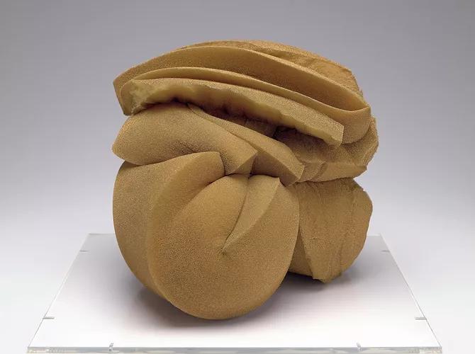 In the mid-1960s, Chamberlain began experimenting with urethane foam, a material that allowed for greater spontaneity and immediacy in his sculptural process. He used commercially available polyurethane foam, which he cut, folded, and tied with cord to create dynamic forms. The foam sculptures were often described as playful and anthropomorphic, imbued with a sense of movement and flexibility that contrasted sharply with the rigidity of his metal works (The Art Story) (Aspen Art Museum).
