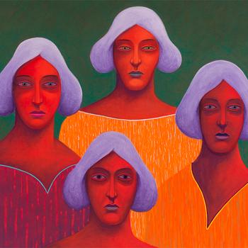 An important aspect of Wood's technique is his use of acrylic paint for underpainting, followed by oil paint for overpainting. This method allows for a richness in texture and depth while maintaining the graphic clarity and vibrant coloration that characterizes his work (Artsy).