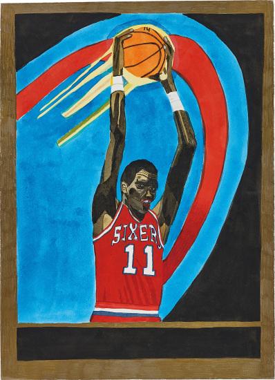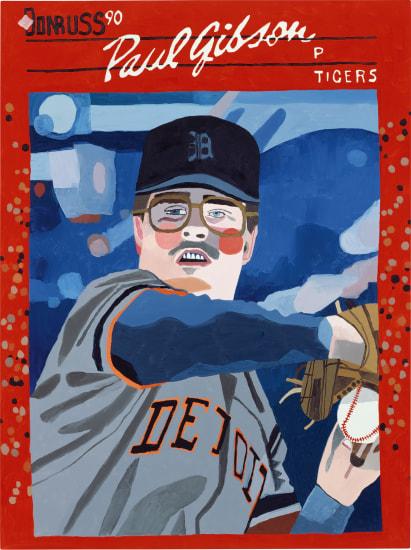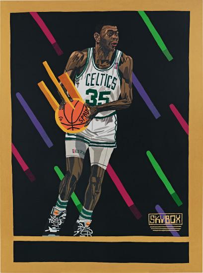 Jonas Wood's Sports Cards series is an intriguing blend of his personal interests in sports and his artistic practice, illustrating the profound connections between sports, art, and personal history. Wood's fascination with sports, particularly basketball, and athletes like Roger Federer, is not just about the thrill of competition but also relates to his own process as an artist, focusing on practice, discipline, and the pursuit of excellence (Phaidon). His choice to paint sports figures stemmed from a desire for accessible subjects that differed from his family portraits, allowing him to explore a theme that was both personally resonant and widely relatable (Phaidon).
