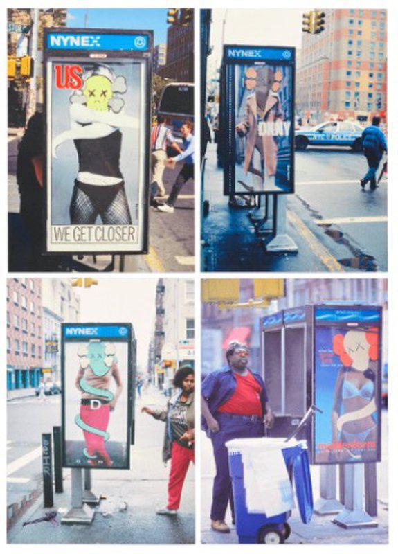 One of the turning points in KAWS' career was when a friend gave him a tool that enabled him to unlock the ad display boards on city phone booths, opening up a new vista of possibilities. He began to interact with advertising by altering advertisements displayed in phone booths and bus shelters, incorporating his distinct figures and motifs into these commercial spaces. This act of repurposing public advertising mediums for art not only questioned the ubiquitous nature of commercial imagery but also democratized access to his artwork, allowing people from all walks of life to encounter it in their everyday environments (Phaidon).
