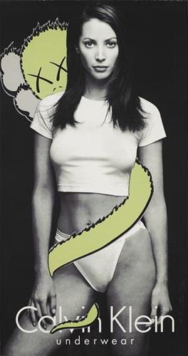 KAWS' ad disruptions were not mere acts of vandalism; they were thoughtful interventions that blended his graffiti roots with a sophisticated understanding of branding and imagery. His mock Calvin Klein ad featuring supermodel Christy Turlington, embraced by a green figure, is a prime example of how he infused commercial ads with his own artistic flair, creating pieces that were both accessible and critically engaging. These early works of 'subvertising' eventually were replicated in a series of screenprint lithographs, marking a transition from street art to collectible artworks (Christie's).